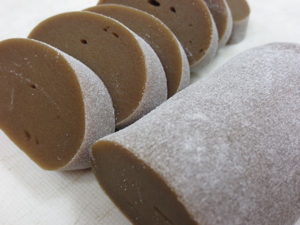 その昔、農家の人が着物の袂に入れて野良仕事をしたと言われている、別名「ふところ団子」です。沖縄産黒砂糖と国内産米粉を使用しています。柔らかいうちは、包丁で切ってそのままお召し上がりいただけます。硬くなりましたら、餅のように焼いてお召し上がりください。電子レンジでも柔らかくなります。販売期間は、1月中旬~3月上旬頃までの予定です。